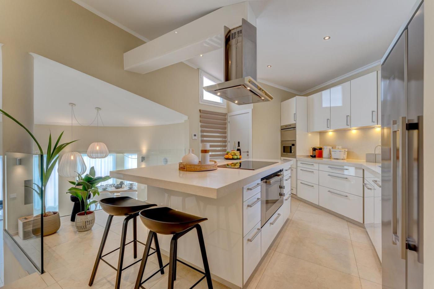 Esta villa con aire acondicionado consta de 6 dormitorios, una sala de estar, una cocina totalmente equipada con nevera y cafetera, y 6 baños con bidet y ducha. Hay toallas y ropa de cama en la villa.