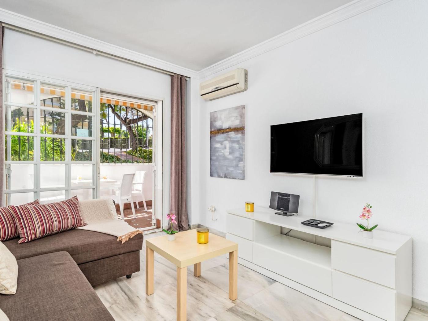Apartamento. This air-conditioned apartment is comprised of 1 living room, 1 separate bedroom and 1 bathroom with a shower. The well-equipped kitchen features a stovetop, a refrigerator, kitchenware and an oven. Featuring a terrace with garden views, this apartment also offers a washing machine and a flat-screen TV. The unit offers 2 beds.