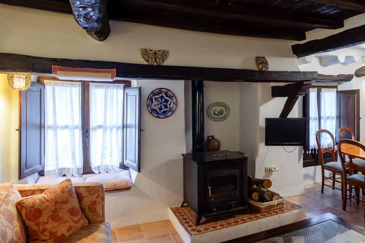 Casa de 4 habitaciones (7-8 adultos). Esta casa rural encantadora de 100 años de antigüedad dispone de terraza y se encuentra en la localidad de Casas del Castañar, a 20 km de Plasencia. Ofrece un alojamiento rústico atractivo con WiFi gratuita. La casa cuenta con vigas en el techo, puertas y balcones franceses, chimenea y muebles de madera. Tiene sala de estar con sofá cama y TV y también zona de comedor. La cocina está equipada con microondas, nevera, horno y tostadora. Dispone de 2 dormitorios con 2 camas individuales, 1 dormitorio con cama doble y 1 dormitorio con cama grande.