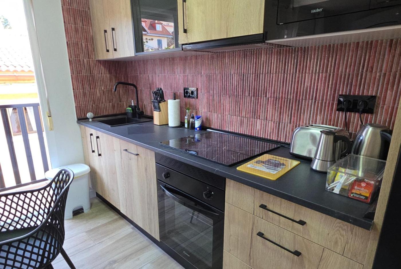 Apartamento Deluxe de 1 dormitorio con vistas a la ciudad. Boasting a private entrance, this air-conditioned apartment comes with 1 living room, 1 separate bedroom and 1 bathroom with a shower and a hairdryer. Guests can make meals in the kitchen that features a stovetop, a refrigerator, a dishwasher and kitchenware. The apartment has tiled floors, a seating area with a flat-screen TV, a washing machine, a tea and coffee maker as well as mountain views. The unit has 2 beds.