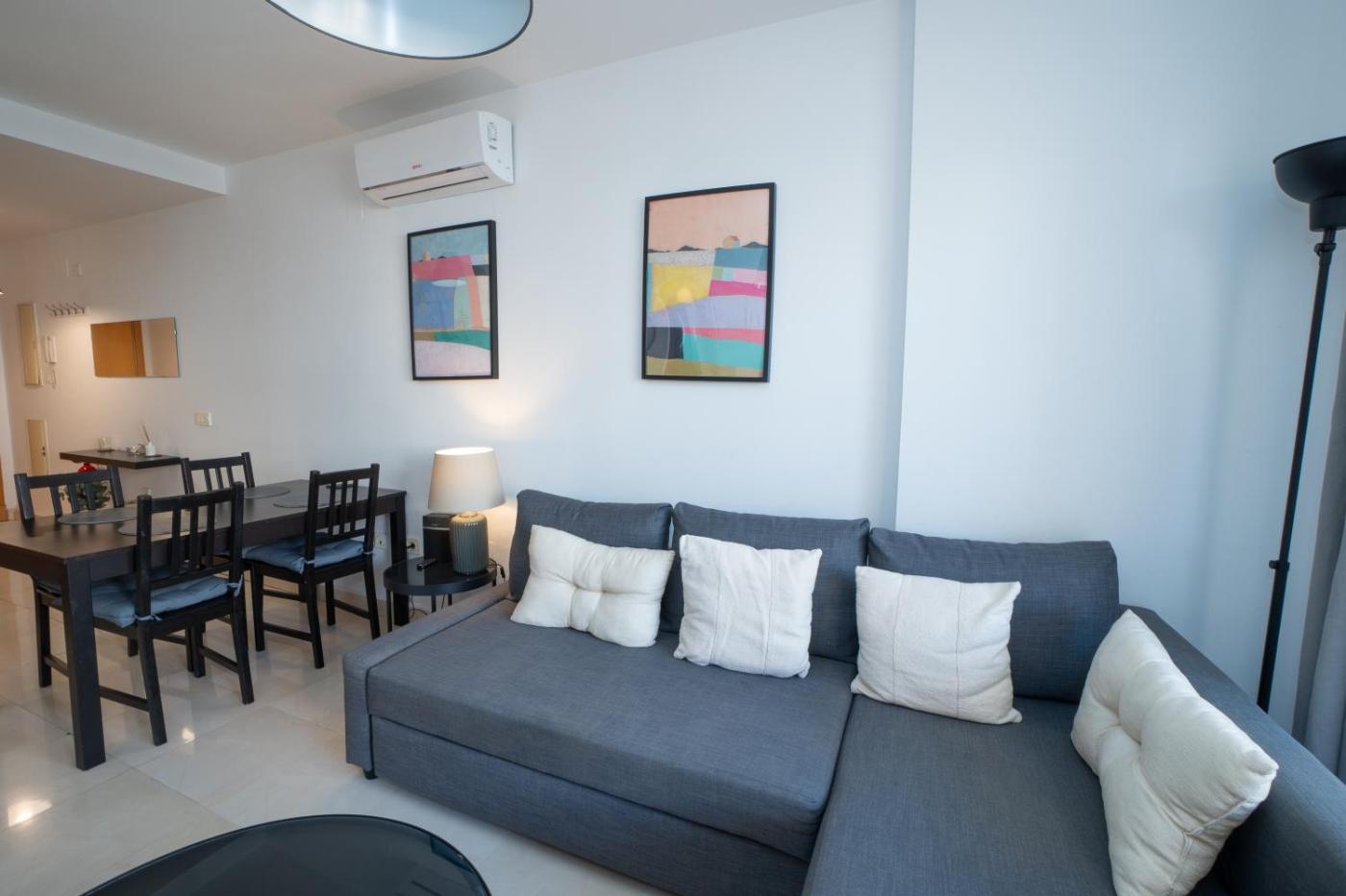 Este apartamento con aire acondicionado consta de 2 dormitorios, una sala de estar, una cocina totalmente equipada con nevera y cafetera, y 2 baños con ducha. Hay toallas y ropa de cama en el apartamento.